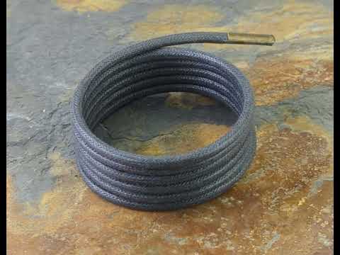 Grey 4 mm round high quantity cotton shoelaces with added Bees wax to give added Durability and finished and longer lasting with bronze metal tips to give the perfect finish. All laces are sold in pairs sizes from 45 cm - 300 cm.